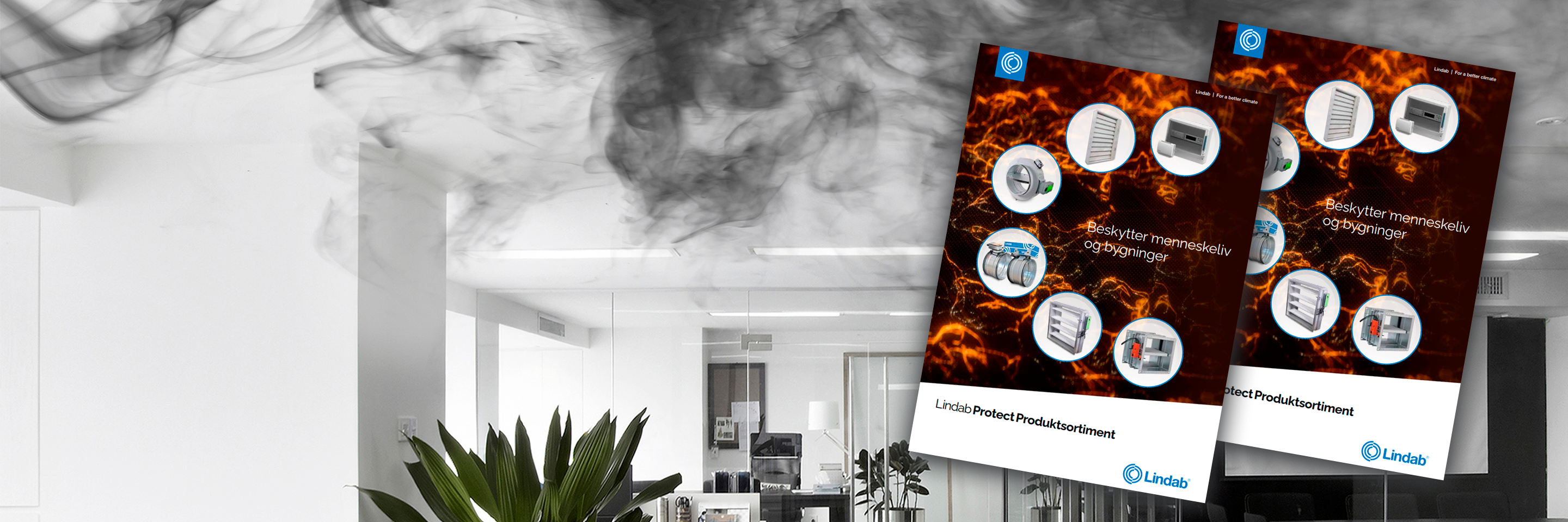 Lindab tilbyder komplette løsninger til brandbeskyttelse i ventilationssystemer, herunder brand- og røgspjæld, røgkontrolspjæld, tilhørende styringer samt røgudsugningskanaler. Vores certificerede produkter og løsninger er udviklet til at beskytte menneskeliv og bygninger. Det kalder vi Lindab Protect.