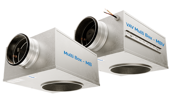 MBV er en kombineret trykfordelingsboks og volumenstrømregulator der bruges til VAV regulering af indblæsningsluft, som gør det muligt at regulere op til 200 pa med lavt lydniveau.