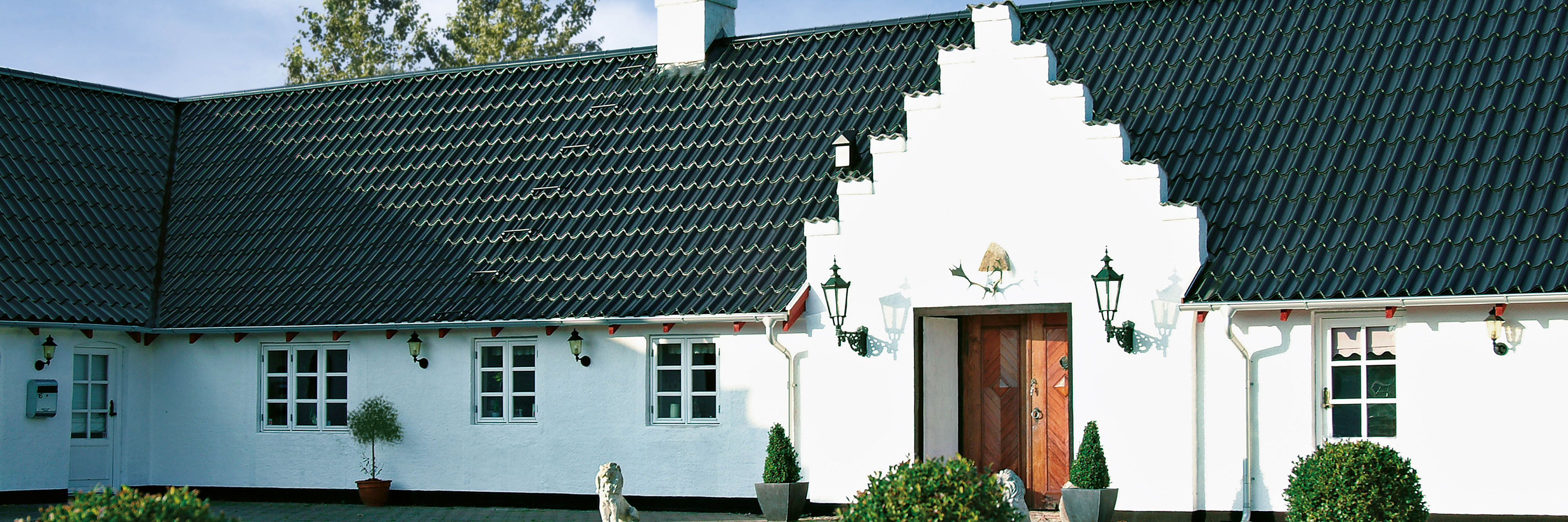Den smukke tagløsning med gennemført tegludseende. Den originale Lindab Topline tagstensprofil giver med sine smukke buer og overflade et flot tag, som man kan glæde sig over år efter år.