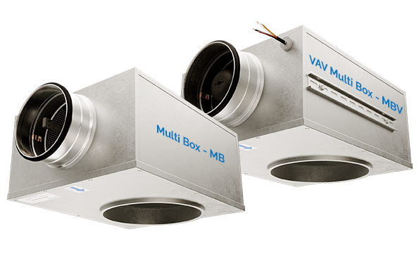 MBV er en kombineret trykfordelingsboks og volumenstrømregulator der bruges til VAV regulering af indblæsningsluft, som gør det muligt at regulere op til 200 pa med lavt lydniveau.