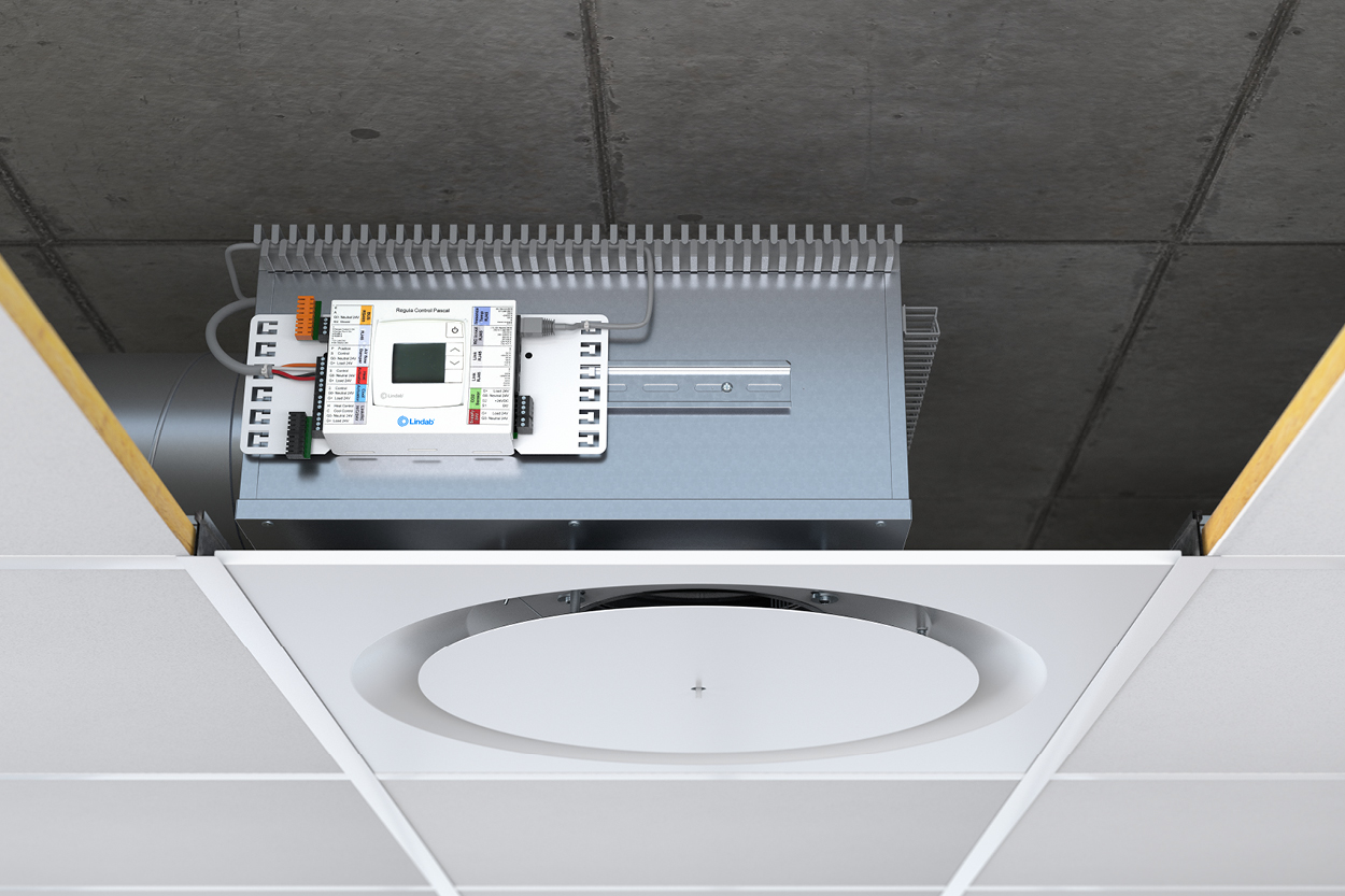 Lindab DCV ONE – en komplet rumforsyningsenhed. Ved at samle flere komponenter i én enhed sikrer vi lavere installationsomkostninger og tid. Du får en mere fleksibel og langtidsholdbar ventilationsopsætning. Med DCV ONE får du en VAV plenumboks, integreret rumregulator, armatur med integreret føler og den er forprogrammeret fra fabrikken.