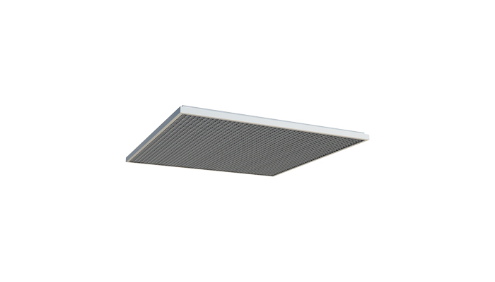 AEC er en rist med kvadratgitter til fraluft fremstillet i aluminium. Kvadratgitter er med 0˚ eller 45˚ hældning og specialudviklet til montage i modullofter med særligt tynd ramme, der bliver usynlig efter montagen.
