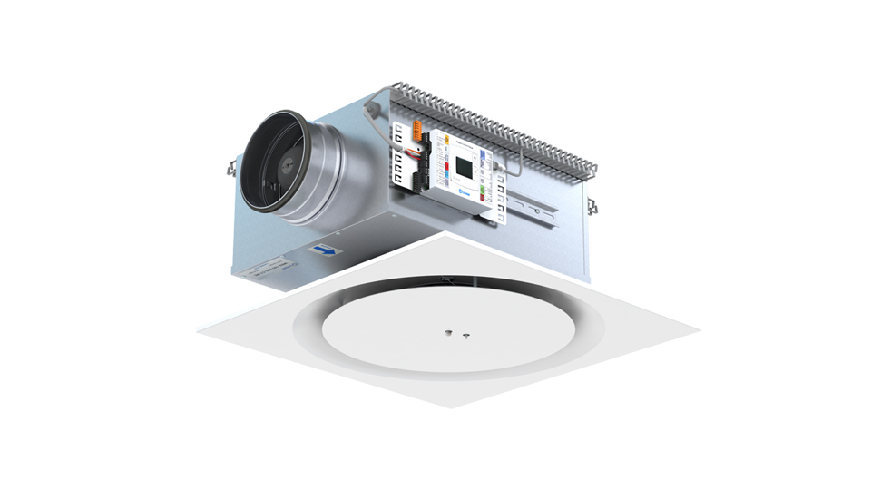 Enheden er udstyret med et unik linear konusspjæld teknologi som gør det muligt at regulere op til 200 pa. med lav lydgenerering. DCV ONE leveres med diffuseren LCP som standard, alternativ LCC eller LKP. Diffuseren leveres med integreret sensor for temperatur og/eller tilstedeværelse.