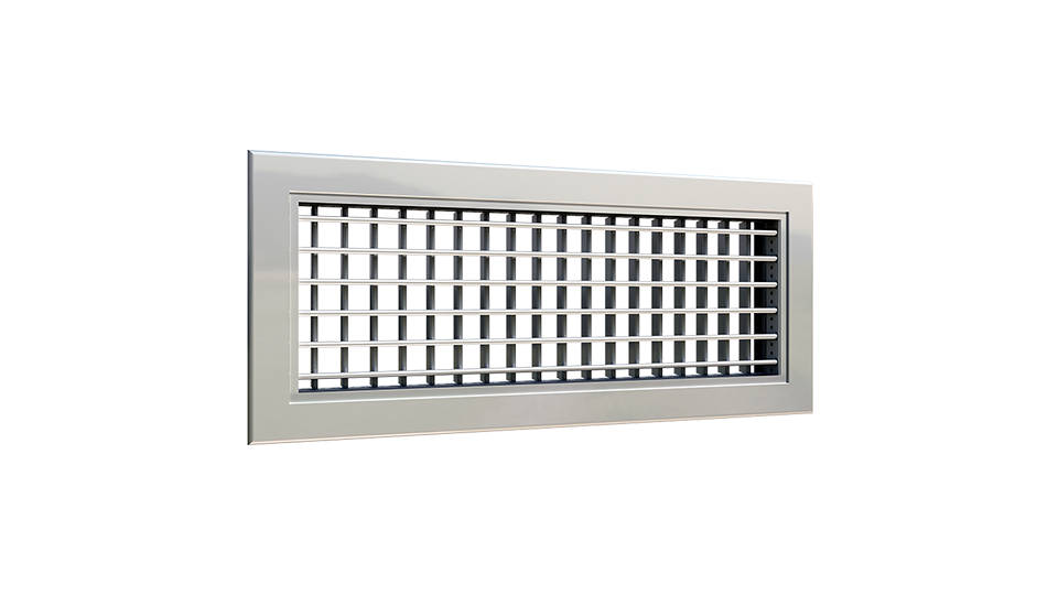 AD21CN-M er en justebar dobbelt lamelrist fremstillet i aluminium. Med justerbare lameller er risten meget anvendelig til indblæsning og kan tilpasses til ønsket kastelængde og luftspredningsmønster.