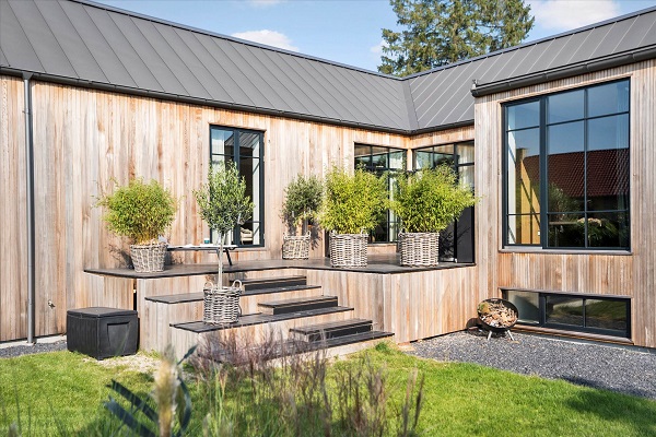 I slutningen af 2020 begynder vi en dialog med Niels Neye om tagløsningen, og i første del af 2021 bliver vi enige om, hvilke løsninger han skal have til sit projekt. Især inddækninger, gavl- og sternløsninger har vi brugt en del kompetencer på at løse, da huset har en speciel arkitektur med mange overgange og forskellige bygningsdele, siger Lene Agger, der er udviklingsingeniør hos Lindab.