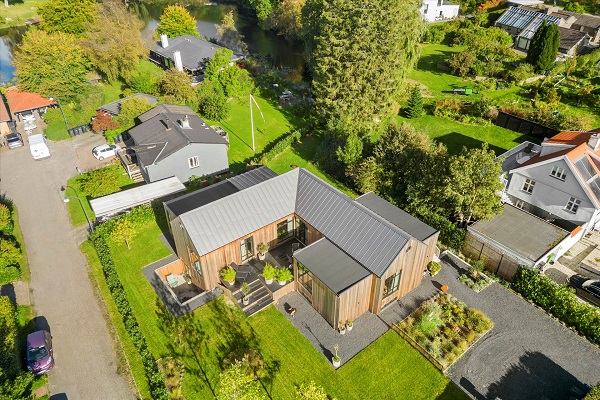 I Holte har Niels Neyes fået bygget en ny villa, som stod færdig i 2022. Villaen er tegnet af den anerkendte arkitekt Kim Utzon. Lindab har leveret tagløsning og tagrender til projektet og demonstrerer, hvordan en skræddersyet løsning med kliktag kan give et unikt, arkitektonisk udtryk.