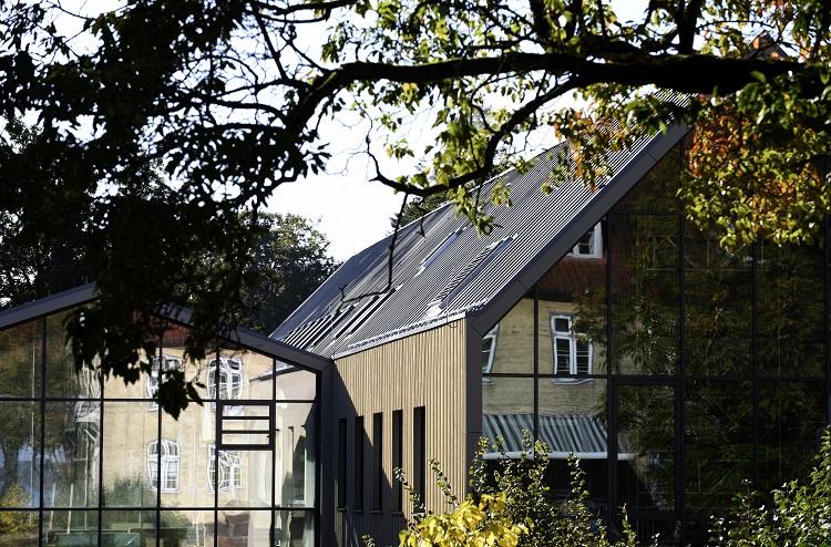 Jels, den 10.01.2023. Louisenlund, Tysklands næststørste kostskole med tilhørende gymnasium i Güby, har investeret i alt omkring 30 millioner euro i "fremtidens læring". Siden første spadestik i oktober 2020 er der bygget en ny beboelsesejendom og et lærings- og forskningscenter på en 73 hektar stor grund. Traditionelle klasseværelser og frontal undervisning hører fortiden til, i stedet giver et fleksibelt lokalelayout mulighed for ledsaget læring alene og i små grupper. Men det er ikke kun indvendigt, at lærings- og forskningscentrets fire nye bygninger er præget af innovativ arkitektur: Klimaskærmen, hvorpå blandt andet Lindab Klik-taget er brugt, er gennemtænkt mht. dets materialer og afspejler de naturlige omgivelser.