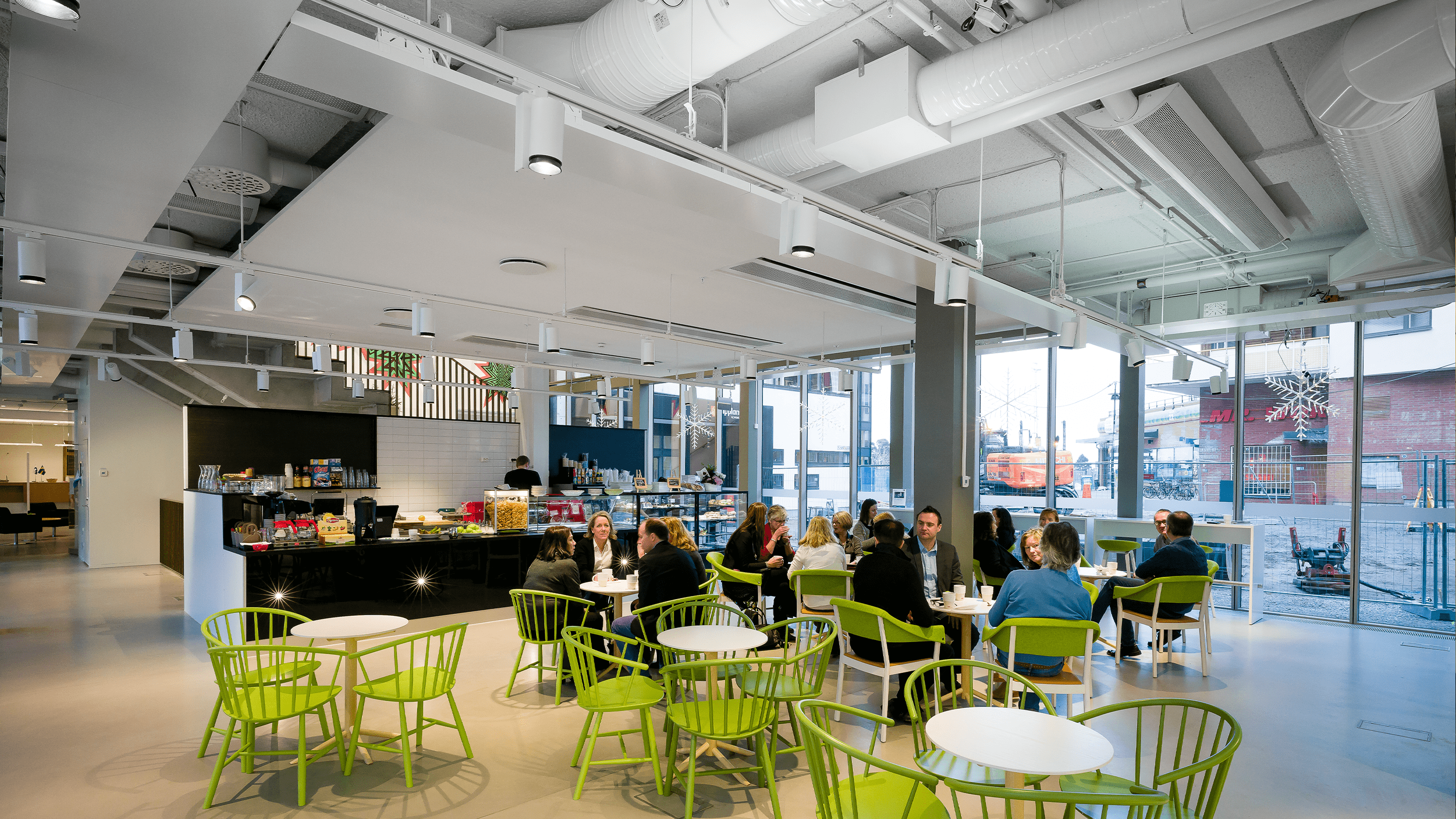 Lindabs leverance omfatter hele kanalsystemet med lyddæmpere samt et Pascal-system med omkring 80 Regula-enheder, Pascal-don, Architect-kølebafler og Lindabs varmestrips langs vinduesfacaderne, som også styres via rumregulering.