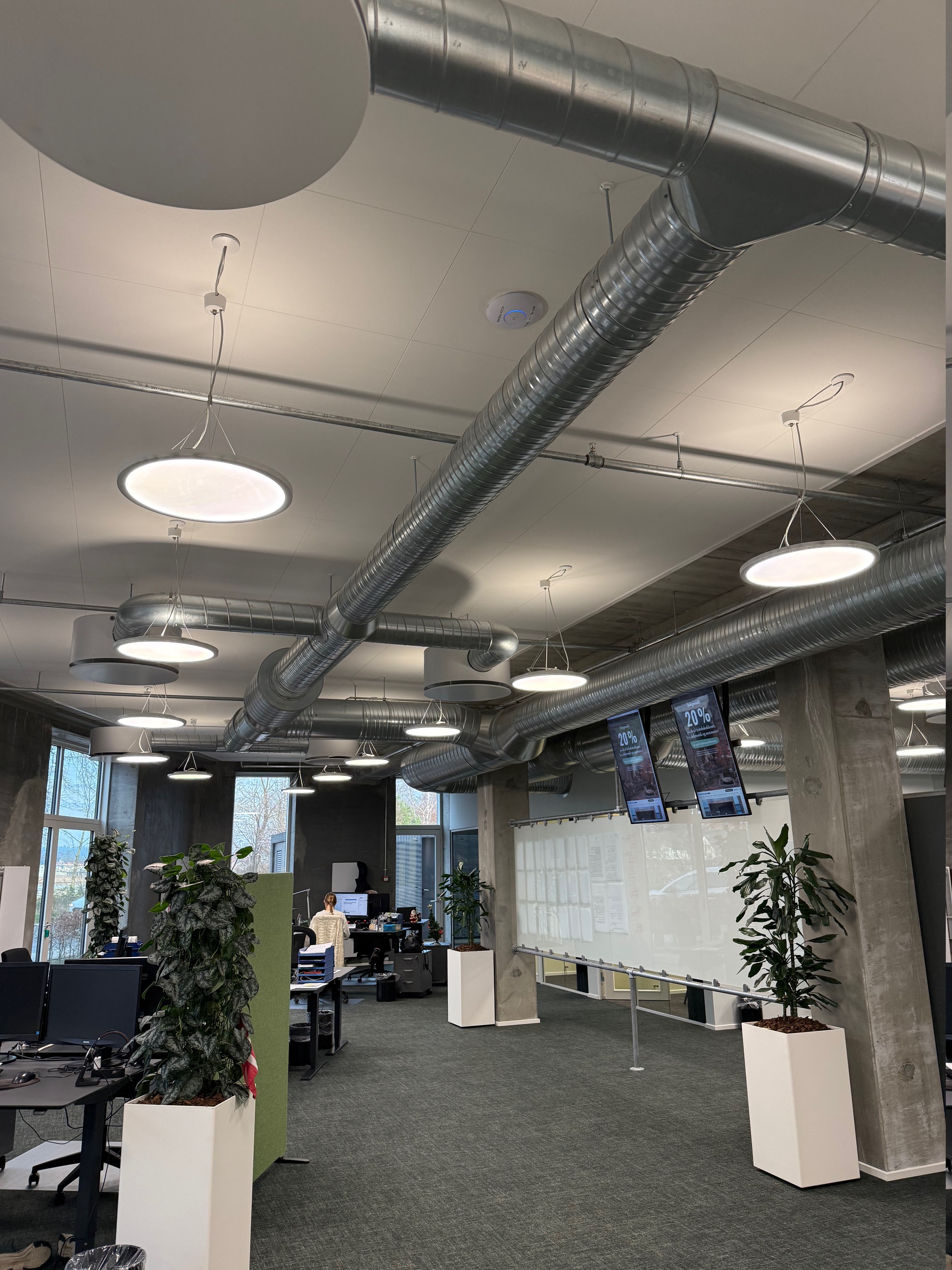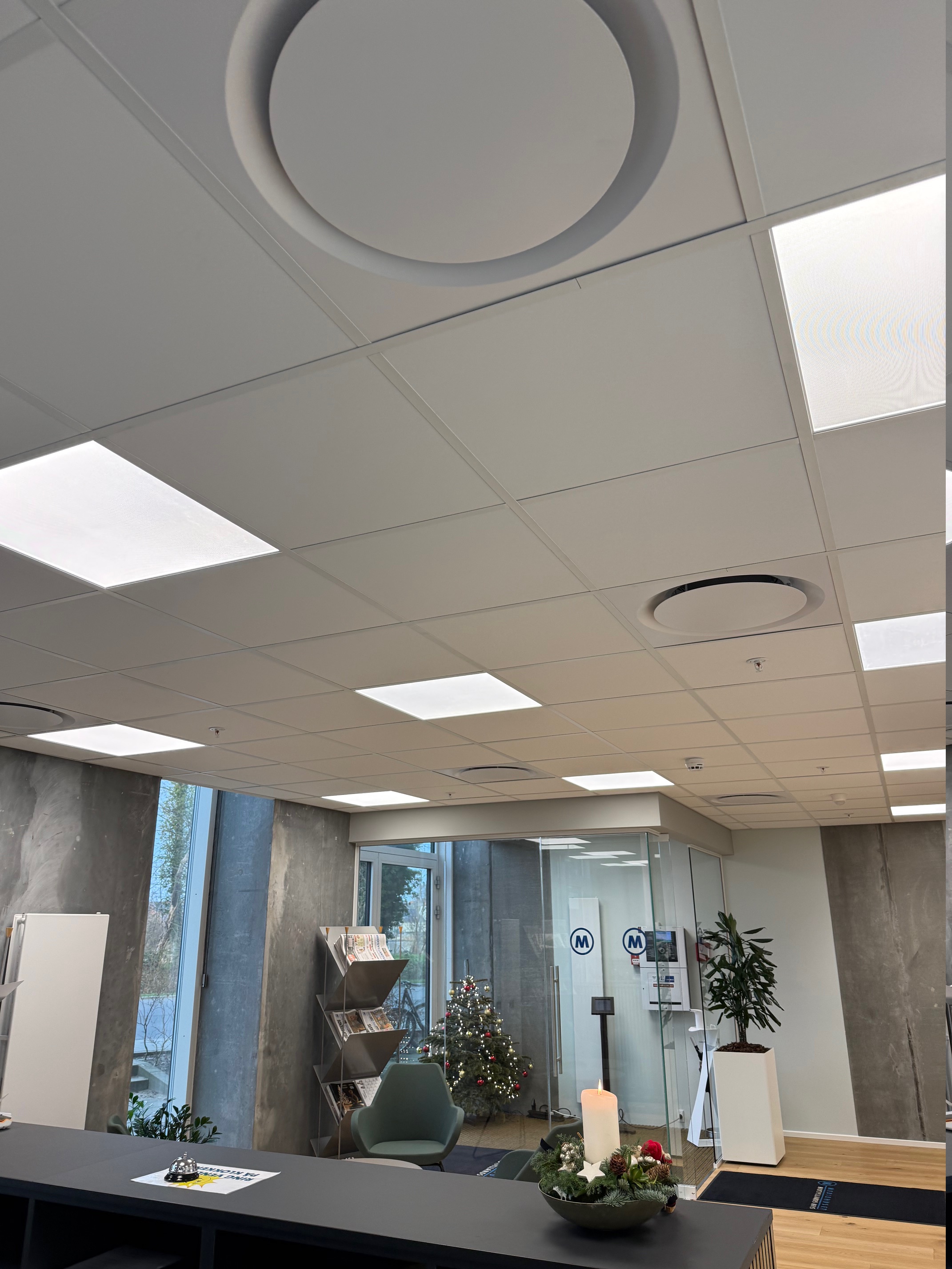 “VAV-systemet regulerer hele tiden efter temperatur og CO₂, og selv små fejl kan give støj. Her var Lindab en stor hjælp,” fortæller Henrik Hoffmann. “De er gode til at finde den rigtige kombination af produkter og sikre, at det spiller sammen i praksis.”